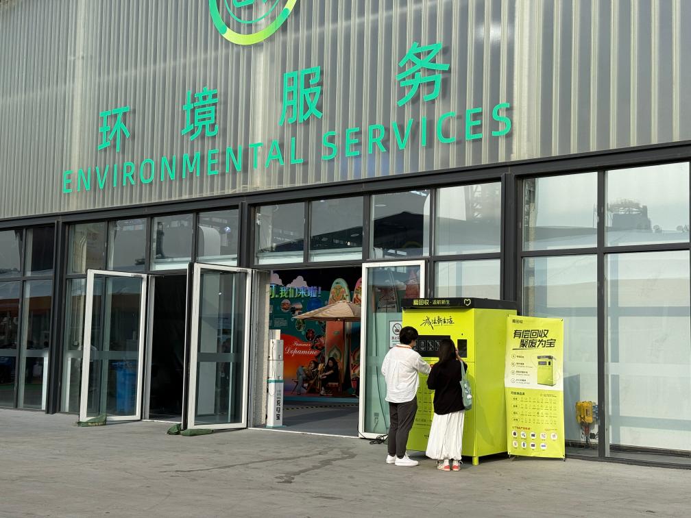 在2025年中國國際服務(wù)貿(mào)易交易會現(xiàn)場,觀眾體驗可回收物智能回收機。新華社記者 田晨旭 攝