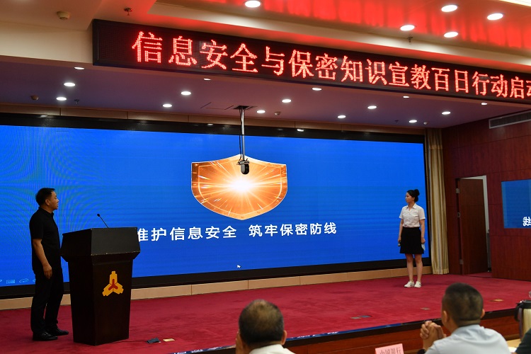 在全體與會人員的見證下,郭志遠(yuǎn)副行長按下啟動鍵,點(diǎn)亮百日行動“安全盾牌”,正式宣布忻州市銀行業(yè)金融機(jī)構(gòu)“信息安全與保密知識宣教百日行動”全面開啟。