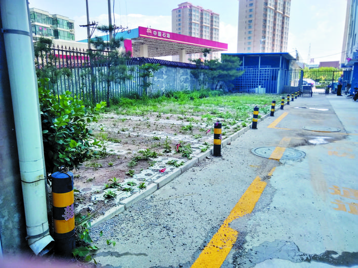 本報“百姓直通車”欄目記者于6月30日上午前往該小區(qū)進行了采訪。該小區(qū)東門設(shè)置于云中北路與雁門東大道路口的西北角,大門的行人出入口開了一家家具店,店門開在行人過道上,店門的右側(cè)設(shè)置了一截不銹鋼護欄,好像是在提請行人“不能直行應(yīng)拐入行車道進入小區(qū)”。進入小區(qū)后,記者向小區(qū)居民了解到,該小區(qū)共有4棟樓,從南到北依序排列,位于南面的1號樓車庫東端有臨時搭建的彩鋼房,房門是用鋼筋焊接的簡易柵欄,面積大概有15平方米,里面空空如也,不知是所做何用,問及居民時也是閃爍其辭說,好像是存車的吧?隨后記者來到了4號樓車庫的東端,大概有8個露天車位被人設(shè)置地樁并鎖死,里面長滿了雜草。當有居民路過,記者問及何故,居民也是借故推脫走開。此處也有一臨時搭建的彩鋼房,里面堆滿了雜物。這些私搭亂建亂設(shè)地樁的現(xiàn)象,究竟是物業(yè)所為?還是個別住戶私搭亂建?帶著這些問題記者找到了小區(qū)保安室(門房),保安室內(nèi)有4人圍坐在一起正在專心致志打撲克,記者問及相關(guān)問題,他們以管事的不在為由推脫了事。