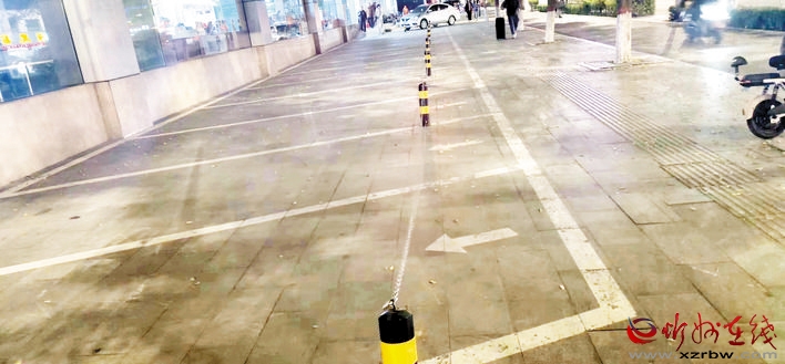 本報(bào)訊 近日,有市民向本報(bào)新聞熱線反映,在位于我市城區(qū)七一北路和團(tuán)結(jié)街交匯處的華美超市門前,一到晚上,門前停車位就被商家用鐵索串聯(lián)起來,既影響通行,又存在安全隱患。