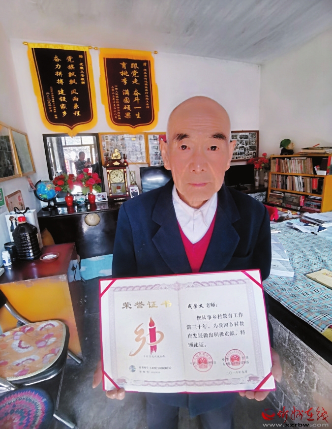 出生于1937年的戎榮義老人人生跌宕起伏:學(xué)業(yè)優(yōu)異卻沒上過大學(xué),教學(xué)優(yōu)秀卻扛過鋤頭,老來當(dāng)村官百姓稱贊,守護紅色舊址贏得身心健康,如今背不駝、腰不彎、腦不亂,特別是炯炯有神的眼睛,讓誰也想不到他已是86歲的耄耋老者。