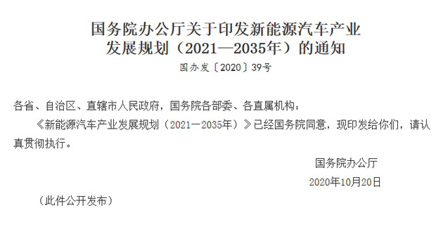 新能源汽車產(chǎn)業(yè)發(fā)展規(guī)劃(2021—2035年) 發(fā)展新能源汽車是我國從汽車大國邁向汽車強(qiáng)國的必由之路,是應(yīng)對氣候變化、推動(dòng)綠色發(fā)展的戰(zhàn)略舉措。2012年國務(wù)院發(fā)布《節(jié)能與新能源汽車產(chǎn)業(yè)發(fā)展規(guī)劃(2012—2020年)》以來,我國堅(jiān)持純電驅(qū)動(dòng)戰(zhàn)略取向,新能源汽車產(chǎn)業(yè)發(fā)展取得了巨大成就,成為世界汽車產(chǎn)業(yè)發(fā)展轉(zhuǎn)型的重要力量之一。與此同時(shí),我國新能源汽車發(fā)展也面臨核心技術(shù)創(chuàng)新能力不強(qiáng)、質(zhì)量保障體系有待完善、基礎(chǔ)設(shè)施建設(shè)仍顯滯后、產(chǎn)業(yè)生態(tài)尚不健全、市場競爭日益加劇等問題。為推動(dòng)新能源汽車產(chǎn)業(yè)高質(zhì)量發(fā)展,加快建設(shè)汽車強(qiáng)國,制定本規(guī)劃。 第一章 發(fā)展趨勢 第一節(jié) 新能源汽車為世界經(jīng)濟(jì)發(fā)展注入新動(dòng)能 當(dāng)前,全球新一輪科技革命和產(chǎn)業(yè)變革蓬勃發(fā)展,汽車與能源、交通、信息通信等領(lǐng)域有關(guān)技術(shù)加速融合,電動(dòng)化、網(wǎng)聯(lián)化、智能化成為汽車產(chǎn)業(yè)的發(fā)展潮流和趨勢。新能源汽車融匯新能源、新材料和互聯(lián)網(wǎng)、大數(shù)據(jù)、人工智能等多種變革性技術(shù),推動(dòng)汽車從單純交通工具向移動(dòng)智能終端、儲(chǔ)能單元和數(shù)字空間轉(zhuǎn)變,帶動(dòng)能源、交通、信息通信基礎(chǔ)設(shè)施改造升級(jí),促進(jìn)能源消費(fèi)結(jié)構(gòu)優(yōu)化、交通體系和城市運(yùn)行智能化水平提升,對建設(shè)清潔美麗世界、構(gòu)建人類命運(yùn)共同體具有重要意義。近年來,世界主要汽車大國紛紛加強(qiáng)戰(zhàn)略謀劃、強(qiáng)化政策支持,跨國汽車企業(yè)加大研發(fā)投入、完善產(chǎn)業(yè)布局,新能源汽車已成為全球汽車產(chǎn)業(yè)轉(zhuǎn)型發(fā)展的主要方向和促進(jìn)世界經(jīng)濟(jì)持續(xù)增長的重要引擎。 第二節(jié) 我國新能源汽車進(jìn)入加速發(fā)展新階段 汽車產(chǎn)品形態(tài)、交通出行模式、能源消費(fèi)結(jié)構(gòu)和社會(huì)運(yùn)行方式正在發(fā)生深刻變革,為新能源汽車產(chǎn)業(yè)提供了前所未有的發(fā)展機(jī)遇。經(jīng)過多年持續(xù)努力,我國新能源汽車產(chǎn)業(yè)技術(shù)水平顯著提升、產(chǎn)業(yè)體系日趨完善、企業(yè)競爭力大幅增強(qiáng),2015年以來產(chǎn)銷量、保有量連續(xù)五年居世界首位,產(chǎn)業(yè)進(jìn)入疊加交匯、融合發(fā)展新階段。必須搶抓戰(zhàn)略機(jī)遇,鞏固良好勢頭,充分發(fā)揮基礎(chǔ)設(shè)施、信息通信等領(lǐng)域優(yōu)勢,不斷提升產(chǎn)業(yè)核心競爭力,推動(dòng)新能源汽車產(chǎn)業(yè)高質(zhì)量可持續(xù)發(fā)展。 第三節(jié) 融合開放成為新能源汽車發(fā)展的新特征 隨著汽車動(dòng)力來源、生產(chǎn)運(yùn)行方式、消費(fèi)使用模式全面變革,新能源汽車產(chǎn)業(yè)生態(tài)正由零部件、整車研發(fā)生產(chǎn)及營銷服務(wù)企業(yè)之間的“鏈?zhǔn)疥P(guān)系”,逐步演變成汽車、能源、交通、信息通信等多領(lǐng)域多主體參與的“網(wǎng)狀生態(tài)”。相互賦能、協(xié)同發(fā)展成為各類市場主體發(fā)展壯大的內(nèi)在需求,跨行業(yè)、跨領(lǐng)域融合創(chuàng)新和更加開放包容的國際合作成為新能源汽車產(chǎn)業(yè)發(fā)展的時(shí)代特征,極大地增強(qiáng)了產(chǎn)業(yè)發(fā)展動(dòng)力,激發(fā)了市場活力,推動(dòng)形成互融共生、合作共贏的產(chǎn)業(yè)發(fā)展新格局。 第二章 總體部署 第一節(jié) 總體思路 以習(xí)近平新時(shí)代中國特色社會(huì)主義思想為指引,堅(jiān)持創(chuàng)新、協(xié)調(diào)、綠色、開放、共享的發(fā)展理念,以深化供給側(cè)結(jié)構(gòu)性改革為主線,堅(jiān)持電動(dòng)化、網(wǎng)聯(lián)化、智能化發(fā)展方向,深入實(shí)施發(fā)展新能源汽車國家戰(zhàn)略,以融合創(chuàng)新為重點(diǎn),突破關(guān)鍵核心技術(shù),提升產(chǎn)業(yè)基礎(chǔ)能力,構(gòu)建新型產(chǎn)業(yè)生態(tài),完善基礎(chǔ)設(shè)施體系,優(yōu)化產(chǎn)業(yè)發(fā)展環(huán)境,推動(dòng)我國新能源汽車產(chǎn)業(yè)高質(zhì)量可持續(xù)發(fā)展,加快建設(shè)汽車強(qiáng)國。 第二節(jié) 基本原則 市場主導(dǎo)。充分發(fā)揮市場在資源配置中的決定性作用,強(qiáng)化企業(yè)在技術(shù)路線選擇、生產(chǎn)服務(wù)體系建設(shè)等方面的主體地位;更好發(fā)揮政府在戰(zhàn)略規(guī)劃引導(dǎo)、標(biāo)準(zhǔn)法規(guī)制定、質(zhì)量安全監(jiān)管、市場秩序維護(hù)、綠色消費(fèi)引導(dǎo)等方面作用,為產(chǎn)業(yè)發(fā)展?fàn)I造良好環(huán)境。 創(chuàng)新驅(qū)動(dòng)。深入實(shí)施創(chuàng)新驅(qū)動(dòng)發(fā)展戰(zhàn)略,建立以企業(yè)為主體、市場為導(dǎo)向、產(chǎn)學(xué)研用協(xié)同的技術(shù)創(chuàng)新體系,完善激勵(lì)和保護(hù)創(chuàng)新的制度環(huán)境,鼓勵(lì)多種技術(shù)路線并行發(fā)展,支持各類主體合力攻克關(guān)鍵核心技術(shù)、加大商業(yè)模式創(ch