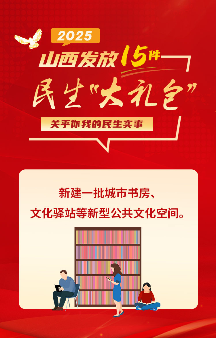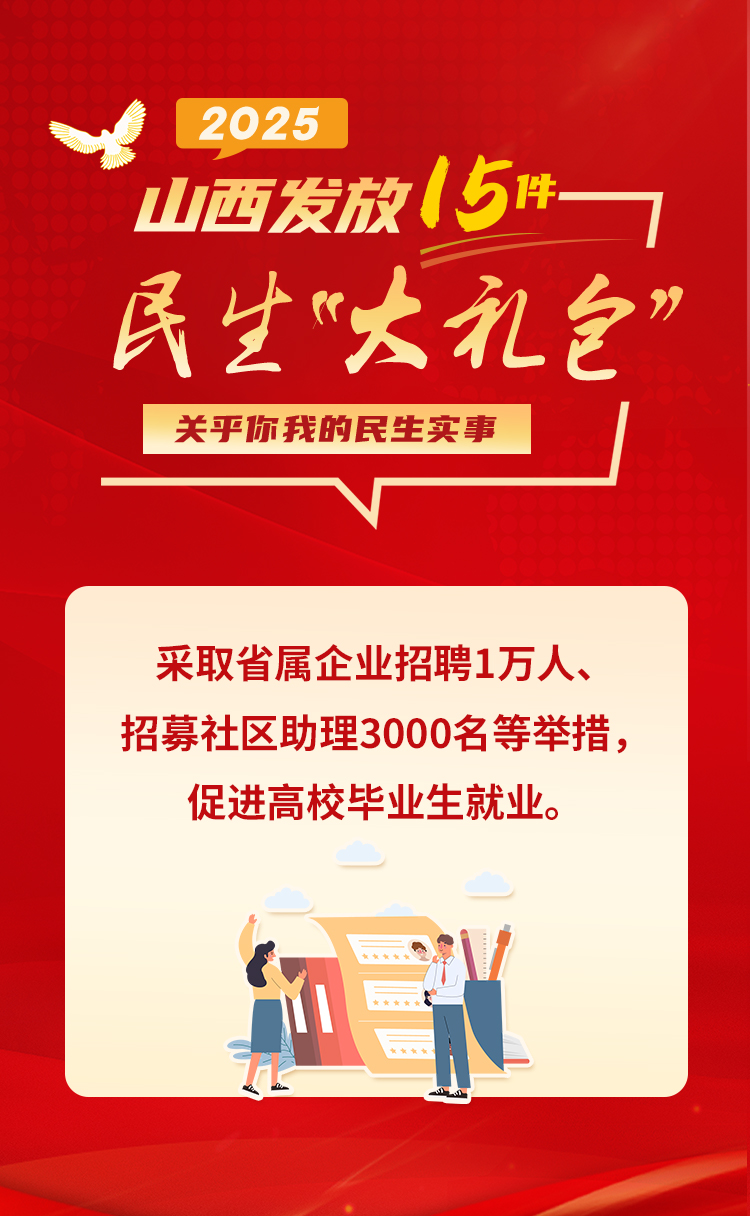 家事國事天下事,讓人民過上幸福生活是頭等大事。 民生實(shí)事承載著 人民群眾對美好生活的向往 2025年 著眼促進(jìn)人的現(xiàn)代化 山西將辦好15件民生實(shí)事 圍繞健康、養(yǎng)老、就業(yè)等方面 切實(shí)增強(qiáng)老百姓的獲得感和幸福感 15張海報↓↓ 一起推動幸福生活進(jìn)度條