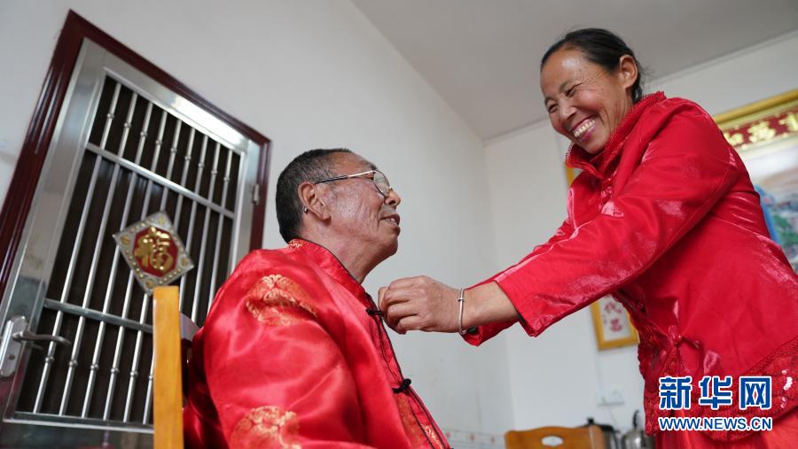59歲的劉仁香和64歲的賴際林是第五對(duì)參與補(bǔ)拍婚紗照的夫婦。2010年,賴際林從事體力勞動(dòng)時(shí)不慎腰椎、脊椎神經(jīng)受損,下半身基本癱瘓,失去了勞動(dòng)能力。為了治好賴際林的病,全家?guī)缀跤帽M了所有積蓄,2014年,夫婦二人成了村里建檔立卡貧困戶。