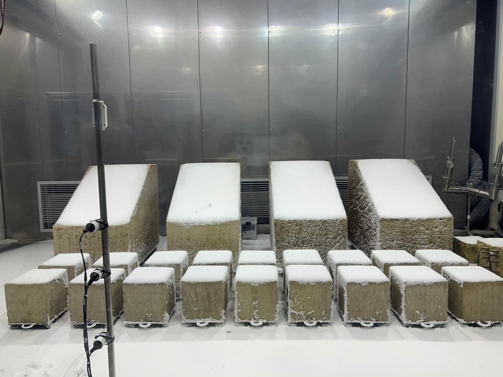 在國內(nèi)首個(gè)文物保護(hù)領(lǐng)域多場耦合實(shí)驗(yàn)室,4塊覆蓋著厚厚冰雪的土方吸引了記者們的注意。雨雪風(fēng)霜是實(shí)驗(yàn)室的模擬對象,從莫高窟等地取來的土石將經(jīng)受各種氣象條件,以揭示石窟寺風(fēng)化的奧秘。