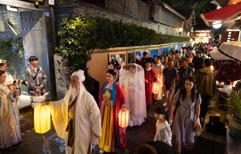 9月29日,在成都寬窄巷子新“十二月市”街區(qū),裝扮成唐宋時代人物形象的演員在巡游表演。新華社記者 江宏景 攝 新華社北京12月19日電題:熱詞生動記錄中國人生活 新華社記者馬欣然、張玉潔、駱飛 “愛達(dá)未來”“生成式人工智能”“中華民族現(xiàn)代文明”“特種兵式旅游”“村超”……多平臺推出的2023年度流行語、新詞語、網(wǎng)絡(luò)用語紛紛發(fā)布。這些年度熱詞囊括年度熱點(diǎn)時事,記錄著時代變遷、社會發(fā)展和百姓生活,勾勒出一個氣象萬千的活力中國。 “微言大義、言由心生,通俗易懂的熱詞是感知社會發(fā)展最為敏銳的神經(jīng)末梢。”北京師范大學(xué)文理學(xué)院中文系副教授王小巖說,網(wǎng)絡(luò)用語是其中最貼近國人生活,最直接反映群體情感的一個觀察窗口。 國家語言資源監(jiān)測與研究中心發(fā)布的2023年度“十大網(wǎng)絡(luò)用語”分別為:愛達(dá)未來、煙火氣、數(shù)智生活、村BA、特種兵式旅游、顯眼包、主打一個××、多巴胺穿搭、命運(yùn)的齒輪開始轉(zhuǎn)動、新職人。 專家表示,監(jiān)測語料庫中包含了視頻彈幕、網(wǎng)絡(luò)新聞等不同媒體形式的語言資源,分析的語料規(guī)模超過80億字符。 王小巖認(rèn)為,網(wǎng)絡(luò)新詞新語或是偶有出現(xiàn)的舊字新說,彰顯出漢語的旺盛生命力?!疤胤N兵式旅游”“多巴胺穿搭”源于網(wǎng)民把跨行業(yè)的專有名詞進(jìn)行混搭,“命運(yùn)的齒輪開始轉(zhuǎn)動”“主打一個××”,具有感染力強(qiáng)、易于互聯(lián)網(wǎng)傳播的特性。 如“愛達(dá)未來”“煙火氣”等熱詞,貼近日常生活,富有人情味與浪漫詩意,展現(xiàn)了經(jīng)濟(jì)社會加速復(fù)蘇下的生活圖景,寄托人們對生活的美好愿景?;ヂ?lián)網(wǎng)詞匯融合精彩生活的語境,體現(xiàn)出中國經(jīng)濟(jì)企穩(wěn)向好、社會生活安定有序的堅實(shí)基礎(chǔ)。