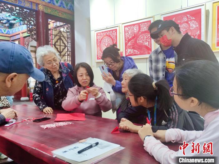 游客現(xiàn)場(chǎng)體驗(yàn)剪紙,感受中華傳統(tǒng)文化的魅力。楊靜攝
