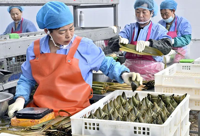 二是工藝出“粽”?!叭斎~,三顆棗,一百克糯米不能少?!鼻嗵留兆硬粌H全手工傳統(tǒng)工藝包制,更輔以現(xiàn)代高溫滅菌和真空包裝技術(shù),傳統(tǒng)與現(xiàn)代相結(jié)合,讓青塘粽子美味更健康。