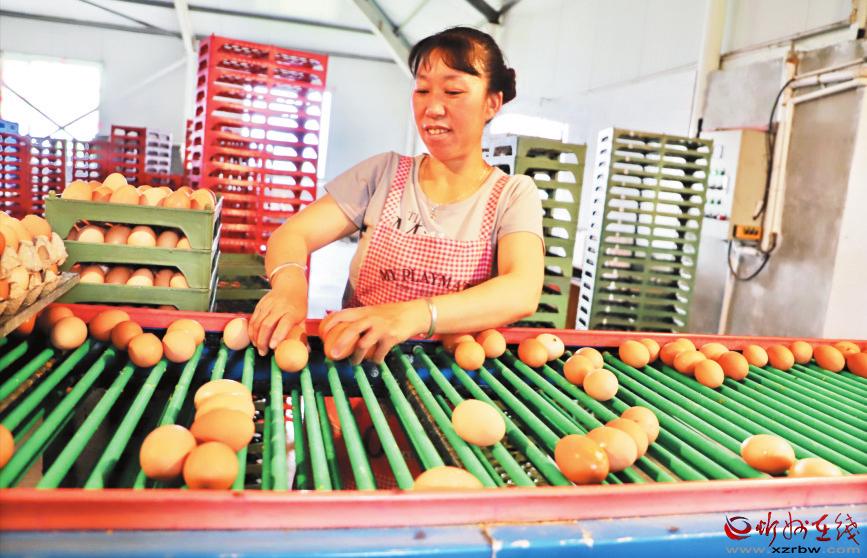 原平農(nóng)商行積極開展“三大四掃五進(jìn)”活動(dòng),讓普惠金融的觸角向鄉(xiāng)村不斷延伸,精準(zhǔn)對接縣域種養(yǎng)大戶,支持種養(yǎng)業(yè)發(fā)展。今年,該行為原平市興崞養(yǎng)殖專業(yè)合作社提供400萬元信貸資金,解決了企業(yè)流動(dòng)資金不足的問題。圖為專業(yè)合作社的工人在車間分撿雞蛋。趙 鴻 攝
