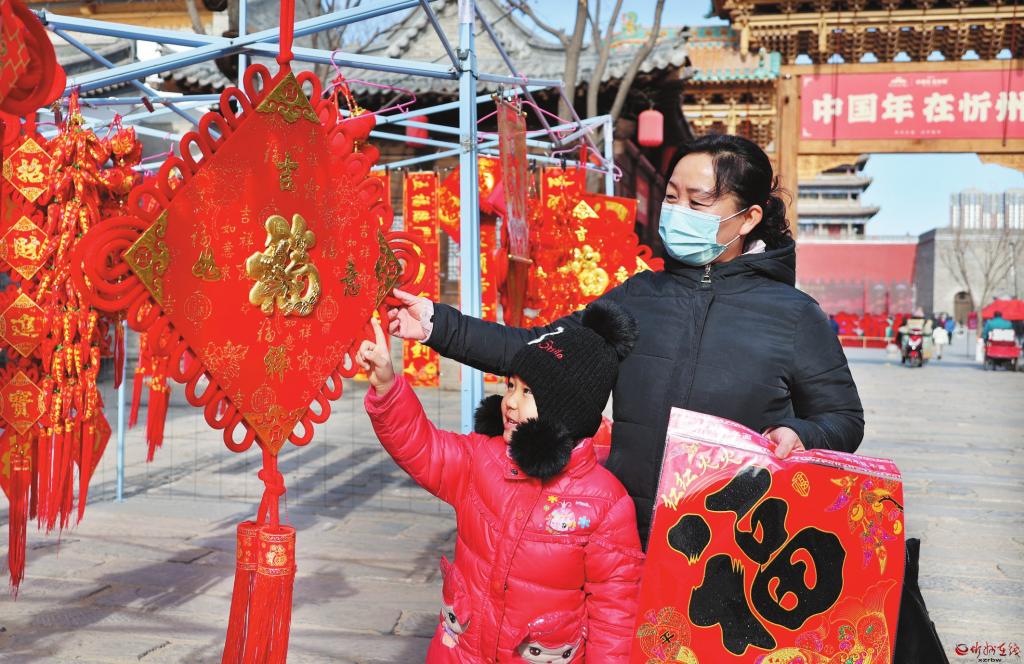 春節(jié)臨近,我市各大商場和年貨市場洋溢著濃濃的年味兒。春聯(lián)、“?!弊帧ⅰ爸袊Y(jié)”等賀歲商品琳瑯滿目,到處都是紅紅火火的過年氣氛。右圖為2月3日,市民在忻州古城南北大街集市上選購年貨。 (張存良 攝)