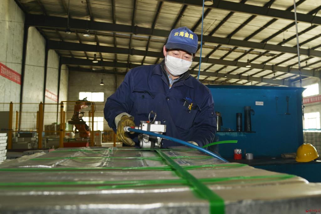 五臺(tái)云海鎂業(yè)工人正在打包產(chǎn)品。 張存良 攝