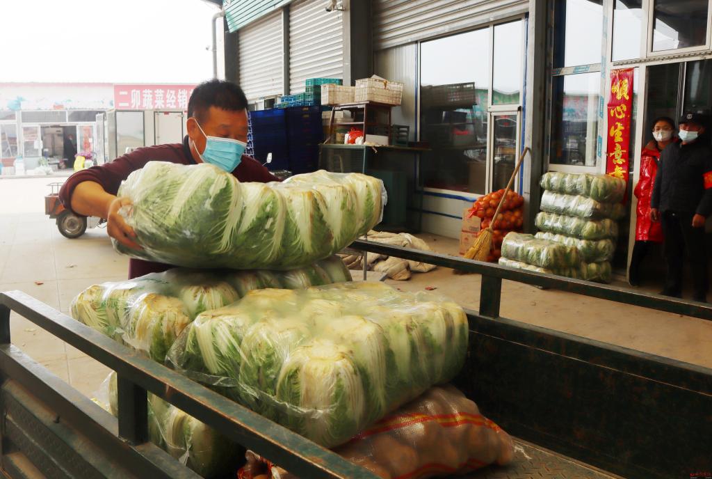 當日上午10時,記者在忻府區(qū)華瑞農(nóng)副產(chǎn)品批發(fā)市場看到,商戶們正在有條不紊地裝貨卸貨,白菜、豆角、茴子白、蘋果等群眾日常所需的蔬菜和水果供應充足。