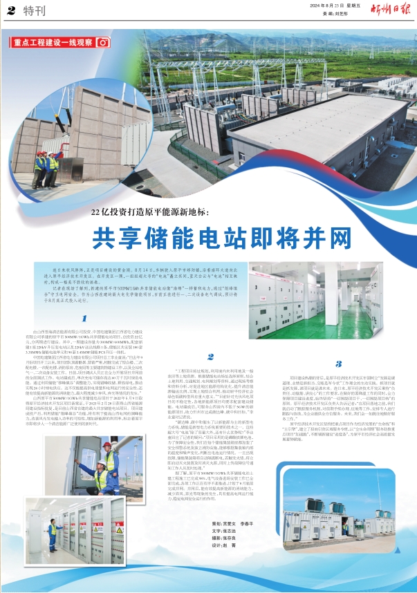記者在現(xiàn)場了解到,新建的原平市500MW/1GWh共享儲能電站像“海綿”一樣蓄積電力,通過“削峰填谷”守衛(wèi)電網(wǎng)安全。作為山西在建的最大電化學(xué)儲能項目,目前正在進行一、二次設(shè)備電氣調(diào)試,預(yù)計將于8月底正式投入運行。