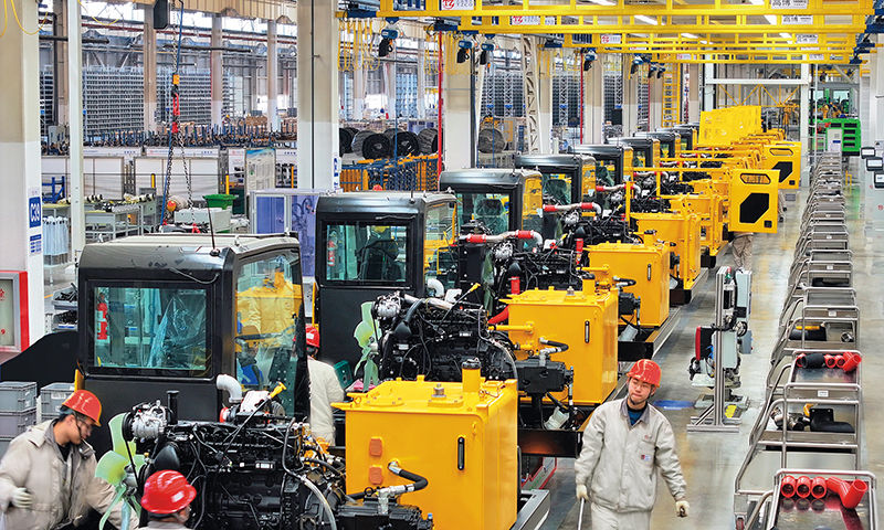 太重智能液壓挖掘機產(chǎn)業(yè)園內(nèi),裝配生產(chǎn)線井然有序、高效運轉(zhuǎn)(2024年1月12日攝) 李兆民攝