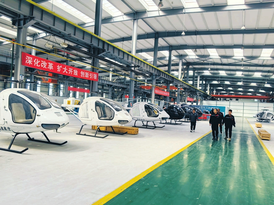 4月11日,山西喆航生產(chǎn)車(chē)間內(nèi),工作人員再次檢視準(zhǔn)備交付的ZH281A直升機(jī)。