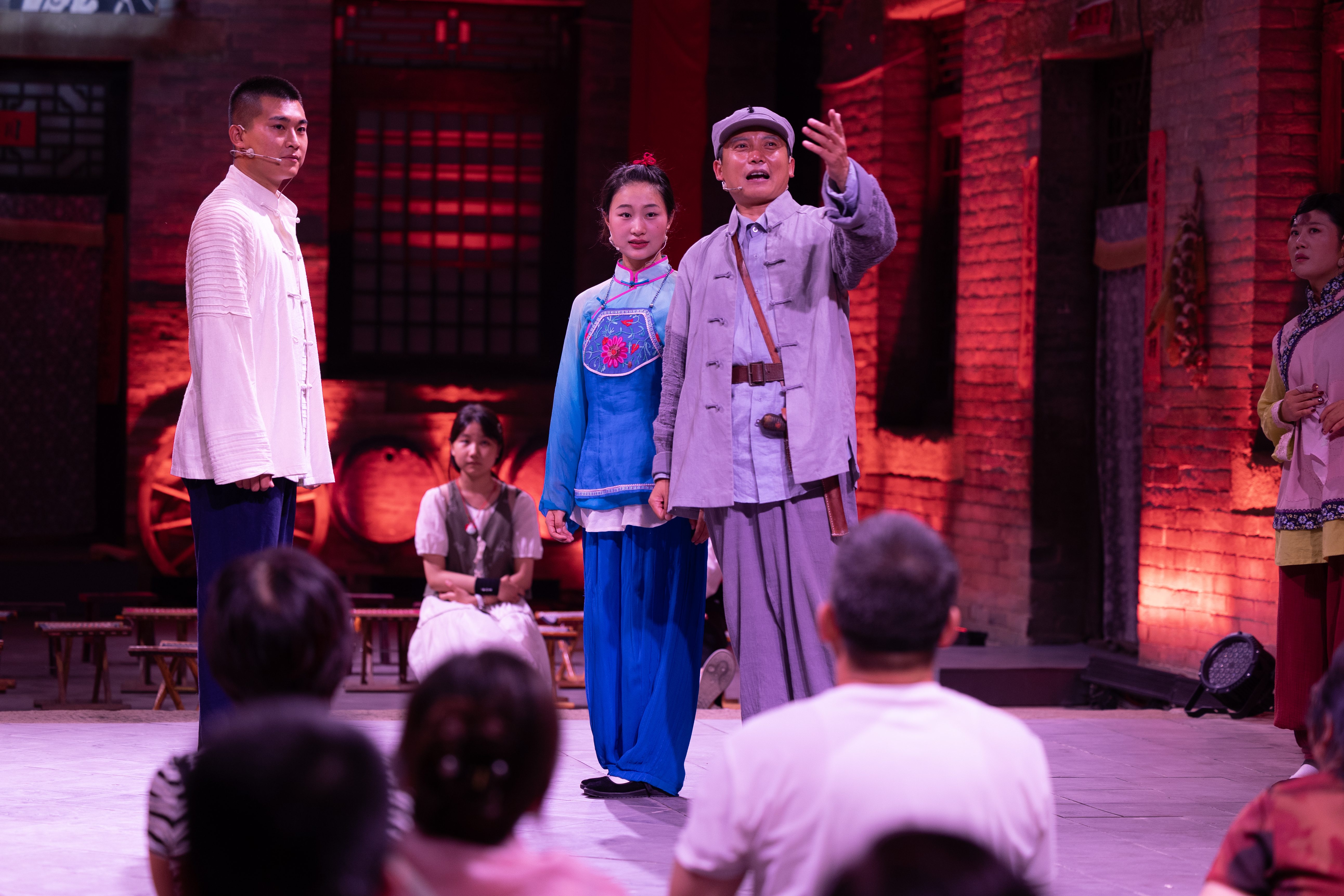 在高墻小院中、老舊的院房門口,演員不時穿梭演繹。蘇莊村是中國傳統(tǒng)村落,幾百年的四合院建筑成了沉浸式演出的天然舞臺。像這樣的村莊,在高平市這片古老的土地上,星羅棋布,如同一部史書,訴說著過往的輝煌與滄桑。