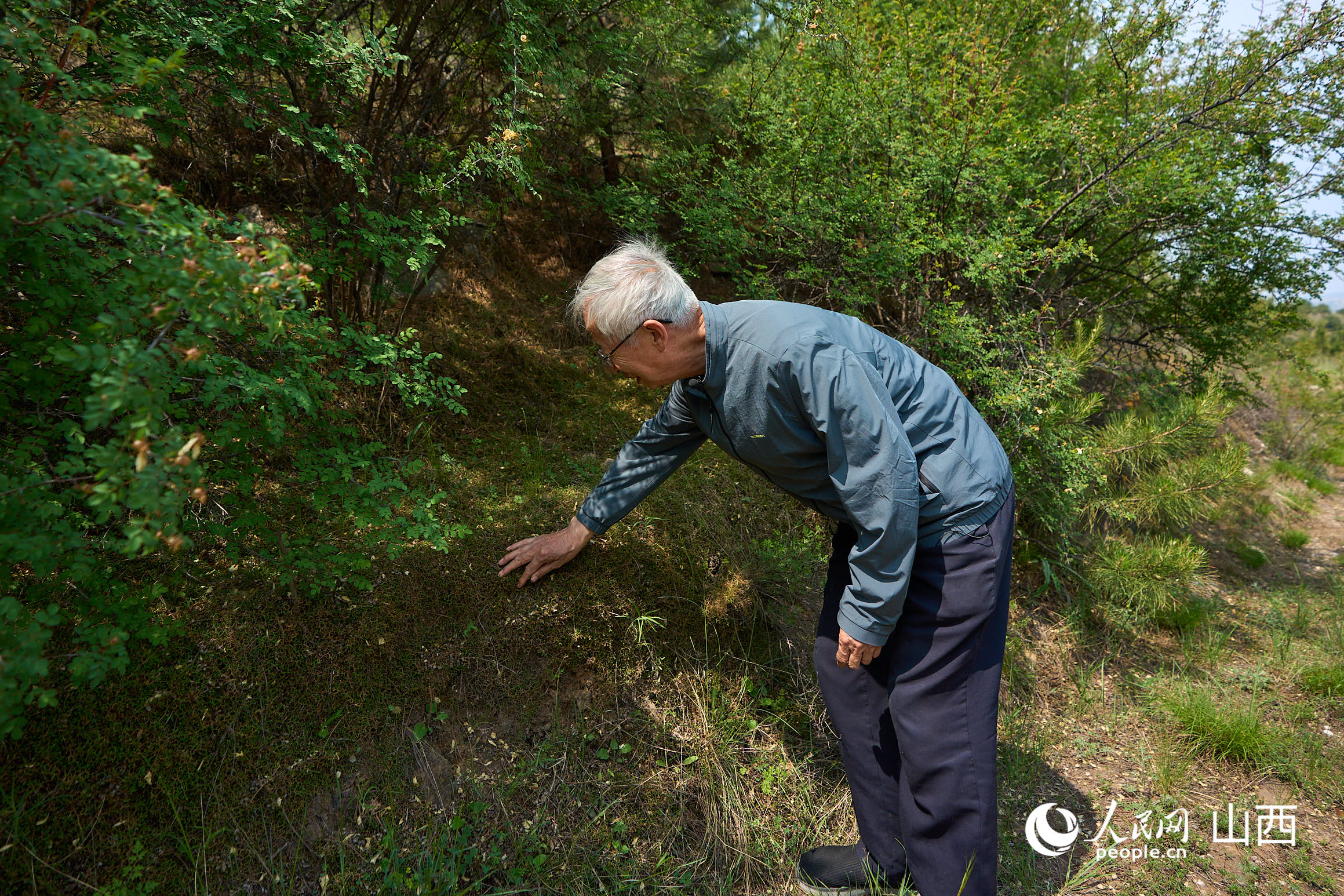 “你看那片是困難造林地,偏關(guān)的土層很薄,土里石頭多,有的土層才有20公分深,而一般樹木成活需要更厚的土層?!?/p>