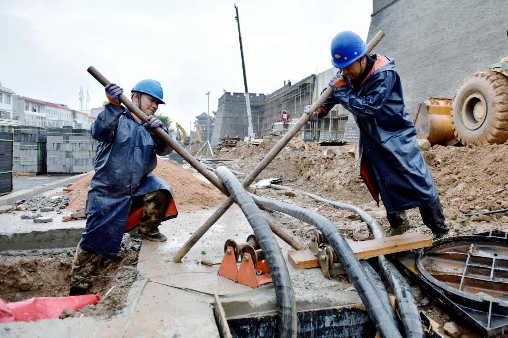 國網(wǎng)忻州供電公司員工在秀容古城電力配套建設(shè)現(xiàn)場敷設(shè)電纜 服務(wù)綠色能源,助推轉(zhuǎn)型發(fā)展。針對已核準(zhǔn)的41項風(fēng)電項目,由專人對接、動態(tài)跟進(jìn),并聯(lián)合市發(fā)改委、能源局,于5月23日、8月19日、9月25日、11月9日先后4次與風(fēng)電客戶召開座談會、推進(jìn)會,指導(dǎo)協(xié)調(diào)風(fēng)電并網(wǎng)手續(xù)辦理、聯(lián)調(diào)聯(lián)試、工程提速等事項,確保各企業(yè)能準(zhǔn)確、高效、合理完成報裝,為能源項目建設(shè)這個全市的“強(qiáng)引擎”提供電力通道“硬支撐”。