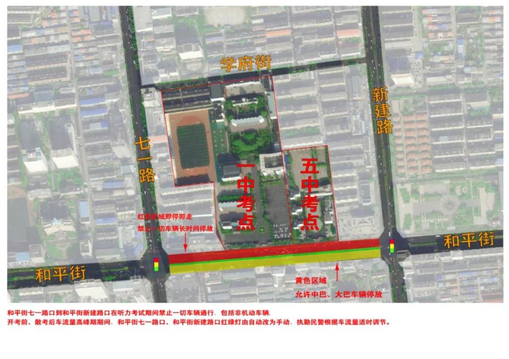 英語聽力考試期間,和平街(七一路至新建路)道路兩側(cè)封閉,實(shí)行交通管制,禁止一切車輛東西通行,禁止鳴喇叭。