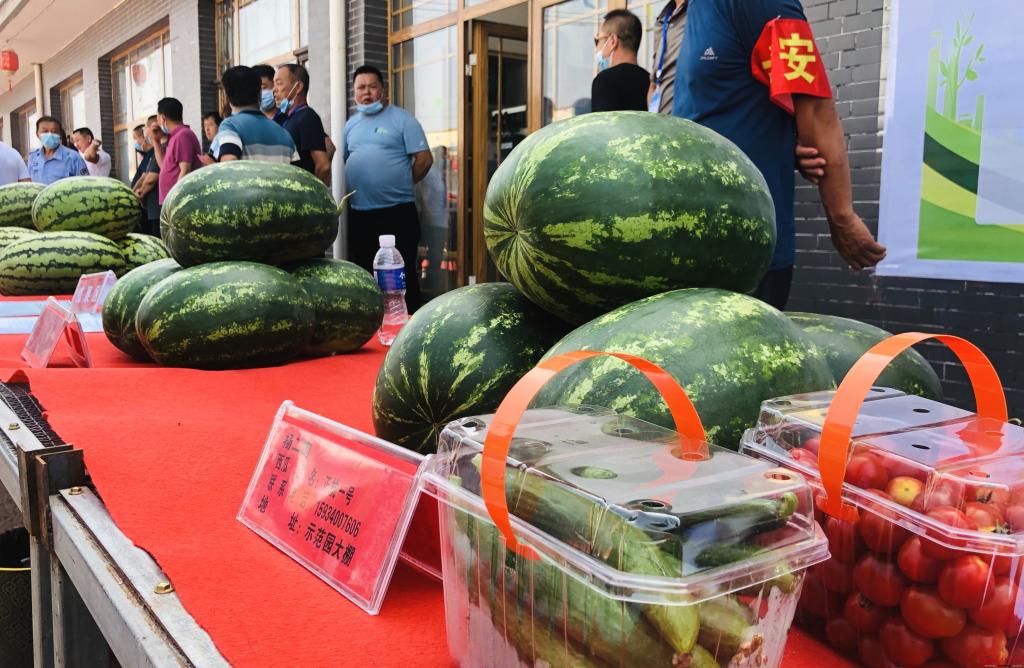 在文化節(jié)現(xiàn)場,鑼鼓歡天、熱鬧非凡,來自全縣多家種植園區(qū)的蔬菜、瓜果等農(nóng)產(chǎn)品被紛紛擺上展臺。其中南園盛產(chǎn)的正抗一號西瓜,個頭大、品相好、香甜爽口,吸引了眾多市民駐足觀看、品嘗購買。