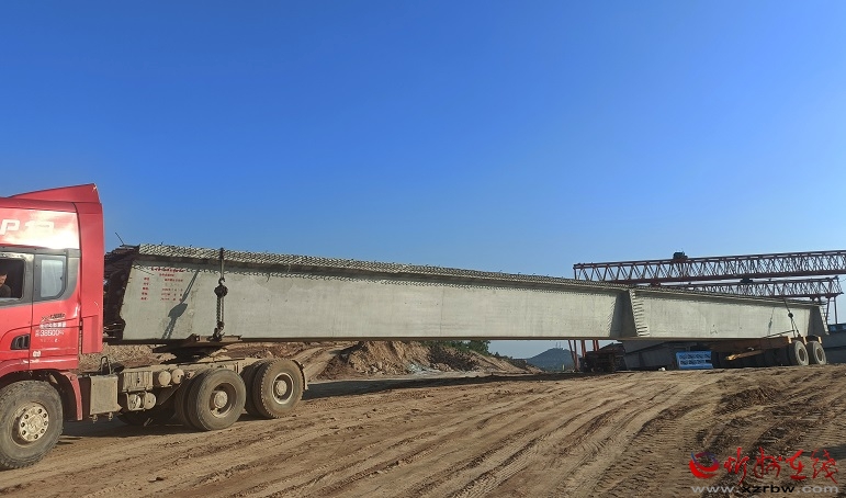徐凹菱形立交橋是太忻大道二標(biāo)段全線第一個(gè)預(yù)制梁架設(shè)的橋梁,位于忻府區(qū)徐凹村,徐凹菱形立交橋首片架設(shè)梁為右幅5-1邊梁,底板寬1米,高1.6米,頂板寬2.45米,梁重100噸,采用吊車架梁,當(dāng)天下午,徐凹菱形立交橋箱梁經(jīng)過起吊,運(yùn)梁一系列作業(yè),平穩(wěn)地落在橋梁支座上,現(xiàn)場一片歡呼。