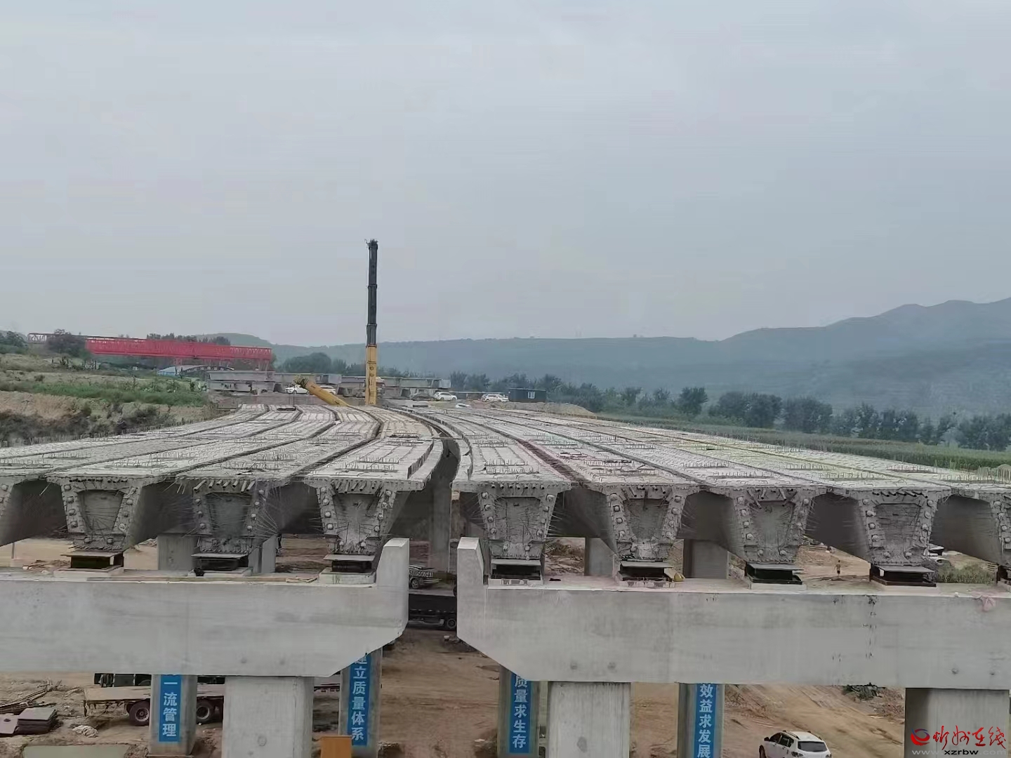 此次箱梁架設(shè)的順利完成標(biāo)志著太忻大道二標(biāo)段項(xiàng)目施工生產(chǎn)邁入了新的階段,為后續(xù)預(yù)制梁的生產(chǎn)和架設(shè)積累了寶貴經(jīng)驗(yàn),為穩(wěn)步推進(jìn)項(xiàng)目施工生產(chǎn)建設(shè)注入了“強(qiáng)心劑”。中建三局集團(tuán)有限公司將繼續(xù)發(fā)揚(yáng)公司“敢為天下先,永遠(yuǎn)爭(zhēng)第一”的企業(yè)精神,咬定9.30通車目標(biāo),堅(jiān)守安全質(zhì)量紅線,確保優(yōu)質(zhì)、高效地完成太忻大道二標(biāo)段道路各項(xiàng)施工任務(wù)。(張志遠(yuǎn))