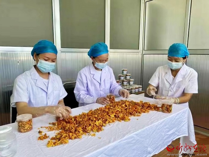 孟秋時(shí)節(jié)的汾源大地,仍然是綠意蔥蘢,百花盛開。忻州市寧武縣東馬坊鄉(xiāng)莊旺村金蓮花茶種植基地里,村民們忙著采摘、晾曬、烘干、裝罐、發(fā)運(yùn),一片忙碌景象。