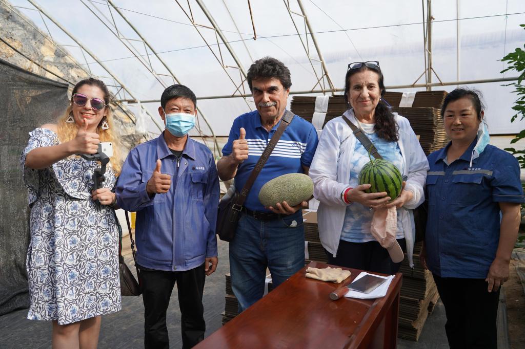 外國(guó)網(wǎng)紅博主抱起榆嶺窊有機(jī)蔬菜大棚的大西瓜