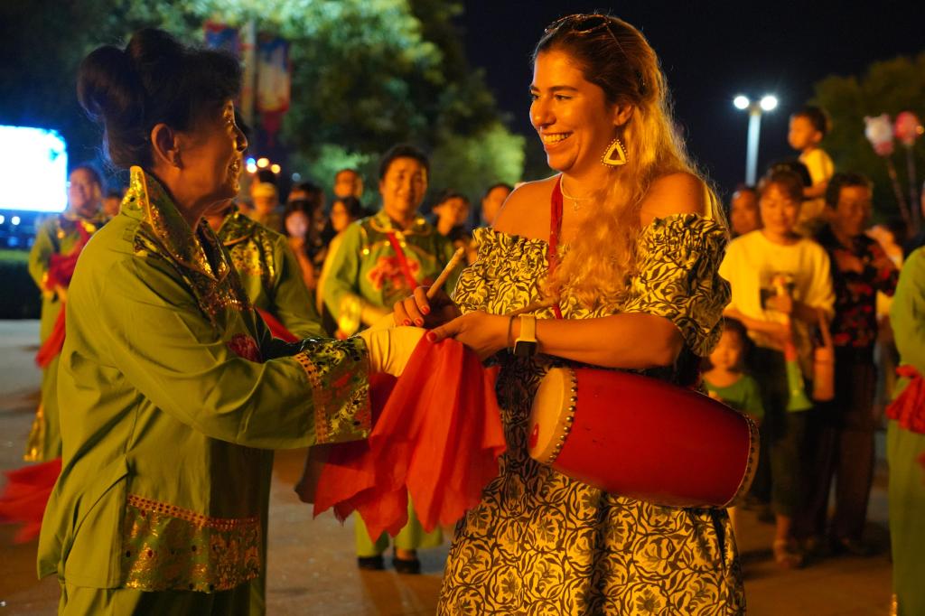 華燈初上,夜幕降臨,臨隩公園如鑲嵌在沿黃景觀帶上的一顆璀璨明珠,盡顯黃河風(fēng)情和河曲民俗文化特色,散發(fā)著熠熠光輝。外國(guó)網(wǎng)紅們來(lái)到熱鬧非凡、流光溢彩的臨隩公園,秧歌、旗袍走秀、打腰鼓等傳統(tǒng)民俗活動(dòng)正在精彩上演,網(wǎng)紅們與群眾互動(dòng),加入表演隊(duì)伍,學(xué)習(xí)打腰鼓,在愉快的氛圍中感受河曲人民豐富多彩的夜生活,贊嘆河曲人民生活富足安逸。打卡河曲參訪活動(dòng)結(jié)束后,外國(guó)網(wǎng)紅們將通過(guò)各自的社交平臺(tái)賬號(hào)分享他們?cè)诤忧乃?jiàn)所聞,與全球網(wǎng)友交流互動(dòng),向世界講述發(fā)生在這里的多彩故事。中央廣播電視總臺(tái)國(guó)際在線等媒體,也將對(duì)活動(dòng)進(jìn)行報(bào)道。(張靚 馬麗)