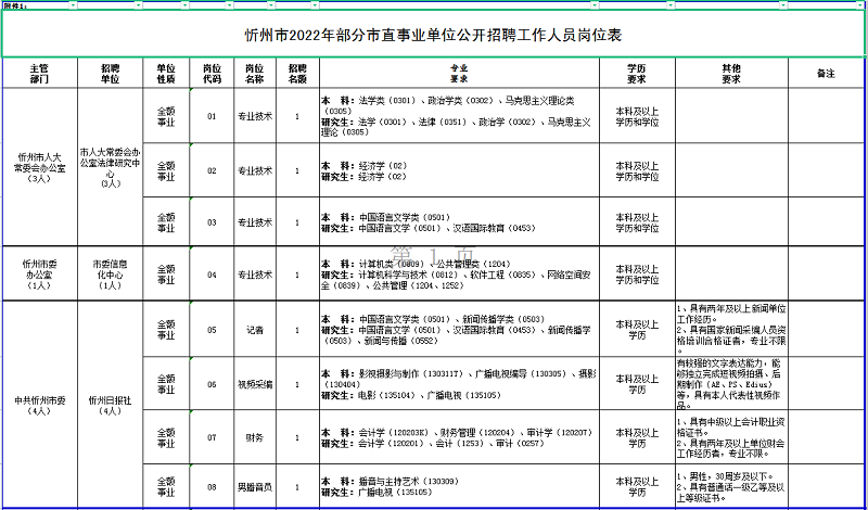 附件:1.忻州市2022年部分市直事業(yè)單位公開(kāi)招聘工作人員崗位表