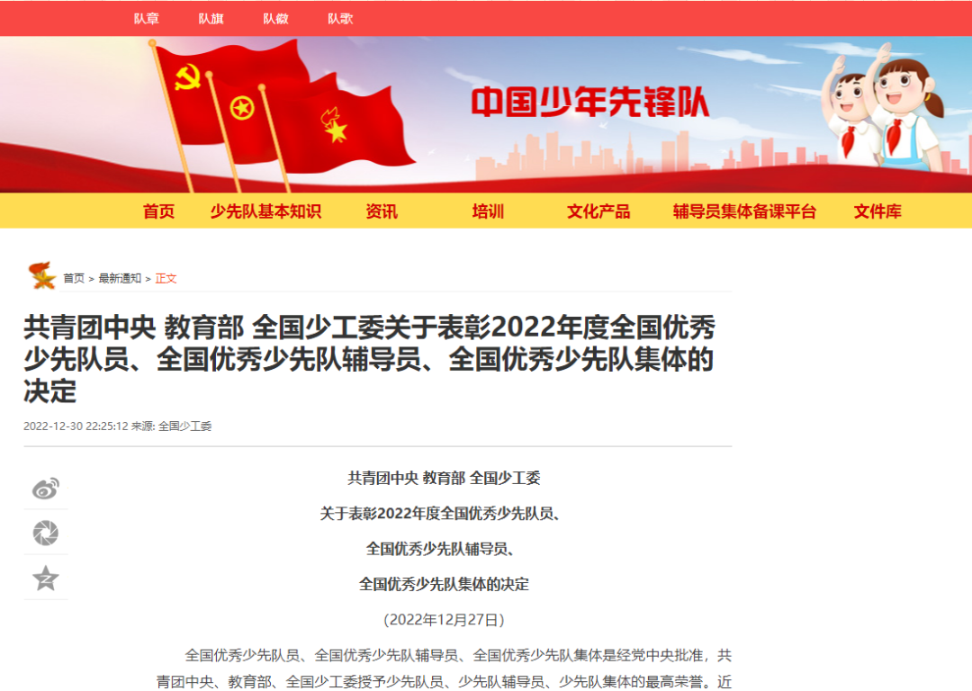 少先隊(duì)員、少先隊(duì)輔導(dǎo)員和少先隊(duì)集體入選