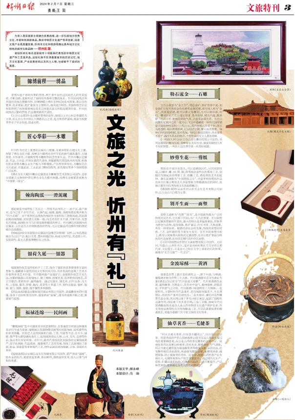 首批忻州禮物共選取我市十項最具代表性的非物質文化遺產(chǎn)和工藝美術品,這些禮物不僅承載著城市的歷史記憶、地方文化基因、產(chǎn)業(yè)發(fā)展密碼以及風土人情,也被賦予了美好的寓意。