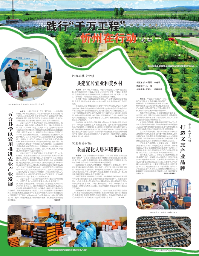 以學(xué)習(xí)運(yùn)用“千萬工程”經(jīng)驗(yàn)為引領(lǐng),堅(jiān)持規(guī)劃先行。具體實(shí)施3個(gè)精品示范村、25個(gè)提檔升級(jí)村。深入推進(jìn)廁所、垃圾、污水“三大革命”,改造衛(wèi)生廁所372座,完成3個(gè)鄉(xiāng)鎮(zhèn)6個(gè)村的生活污水治理工程,確保農(nóng)村生活垃圾收運(yùn)處置覆蓋自然村比例達(dá)到96%以上。新建改建農(nóng)村公路69.4公里和“三個(gè)一號(hào)”旅游公路36.06公里。打造庭院經(jīng)濟(jì)示范村15個(gè)、示范戶75戶。五臺(tái)現(xiàn)代農(nóng)業(yè)產(chǎn)業(yè)示范區(qū)在堅(jiān)持典型引路的基礎(chǔ)上,還要加大力度推廣東雷鄉(xiāng)上王全村“流量經(jīng)濟(jì)”的成功經(jīng)驗(yàn),推進(jìn)鄉(xiāng)村產(chǎn)業(yè)發(fā)展,帶動(dòng)農(nóng)民增收致富,確保農(nóng)民人均可支配收入增幅高于年度地區(qū)生產(chǎn)總值增速。動(dòng)態(tài)監(jiān)測(cè)防貧返貧和易地搬遷后續(xù)扶持,促進(jìn)脫貧人口持續(xù)增收,牢牢守住不發(fā)生規(guī)模性返貧的底線。強(qiáng)化文明村、星級(jí)文明戶創(chuàng)建,堅(jiān)持用文明鄉(xiāng)風(fēng)浸潤美麗鄉(xiāng)村。