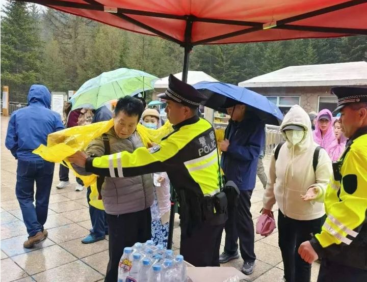 “真是太感謝你們了!如果沒有你們,我們估計(jì)全身都濕透了,真是太感謝了”這是數(shù)十名外地游客在蘆芽山景區(qū)對(duì)寧武公安的夸贊。