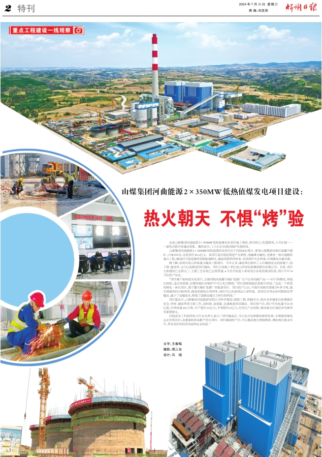 山煤集團河曲能源2×350MW低熱值煤發(fā)電項目位于河曲縣社梁鄉(xiāng),緊鄰山煤集團河曲舊縣露天煤礦,占地293畝,總投資約36.6億元。該項目是河曲縣推進產(chǎn)業(yè)轉(zhuǎn)型、變輸煤為輸電、走煤電一體化道路的重點工程,建成后可促成煤炭資源就地轉(zhuǎn)化,提高資源利用效率,有效保護生態(tài)環(huán)境,實現(xiàn)煤電共贏發(fā)展。