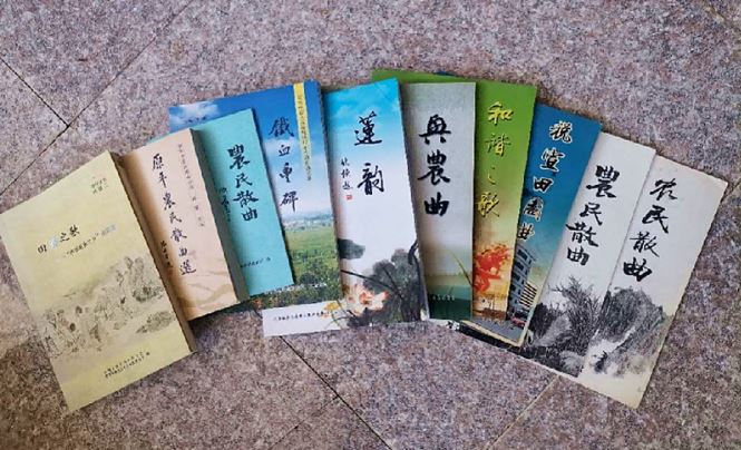 成員們的執(zhí)著與熱愛也結出了累累碩果。16年來,原平農民散曲社陸續(xù)自費編輯出版了《興農曲》《鐵血豐碑》《農民散曲選》《田籟之歌》等10多冊農民詩曲集,免費發(fā)給群眾閱讀;先后共創(chuàng)作散曲作品4萬余首,在省級以上書報刊物發(fā)表作品4000余首;噴繪展板300余幅,在各鄉(xiāng)村農貿集市、戲場、廟會、婚慶等場地懸掛展出宣講200多場次,受眾達2萬人以上;利用現(xiàn)代網絡創(chuàng)辦微刊,現(xiàn)已發(fā)表作品300余期,在弘揚和發(fā)展中華優(yōu)秀傳統(tǒng)文化中起到了事半功倍的作用。