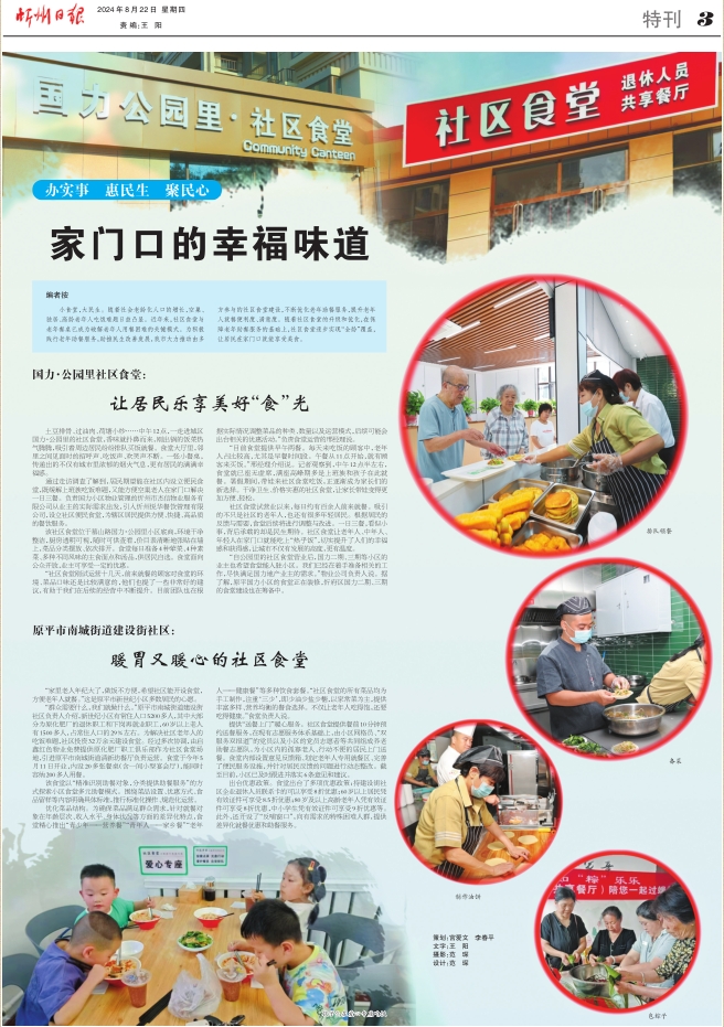 社區(qū)食堂試營(yíng)業(yè)以來(lái),每日約有百余人前來(lái)就餐。吸引的不只是社區(qū)的老年人,也還有很多年輕居民。根據(jù)居民的反饋與需要,食堂后續(xù)將進(jìn)行調(diào)整與改進(jìn)。一日三餐,看似小事,背后承載的卻是民生期待。社區(qū)食堂讓老年人、中年人、年輕人在家門(mén)口就能吃上“熱乎飯”,切實(shí)提升了人們的幸福感和獲得感,讓城市不僅有發(fā)展的高度,更有溫度。