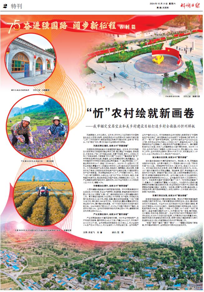 民族要復(fù)興,鄉(xiāng)村必振興。近年來,忻州市以習(xí)近平新時(shí)代中國特色社會(huì)主義思想為指導(dǎo),堅(jiān)持把推進(jìn)鄉(xiāng)村全面振興作為新時(shí)代新征程“三農(nóng)”工作的總抓手,錨定宜居宜業(yè)和美鄉(xiāng)村建設(shè)目標(biāo),堅(jiān)持“實(shí)”字當(dāng)頭,下好“繡花”功夫,聚力打造鄉(xiāng)村全面振興忻州樣板。