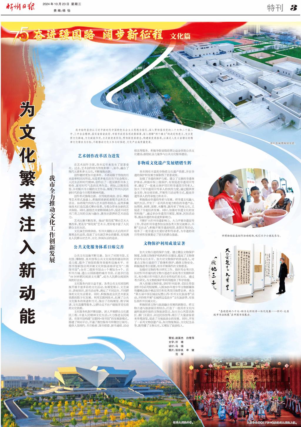 文化演藝持續(xù)供給。忻州大劇院正式啟用并開展常態(tài)化運營,促進(jìn)了文化演藝事業(yè)的繁榮,有效滿足人民群眾對藝術(shù)、文化、休閑生活的追求。