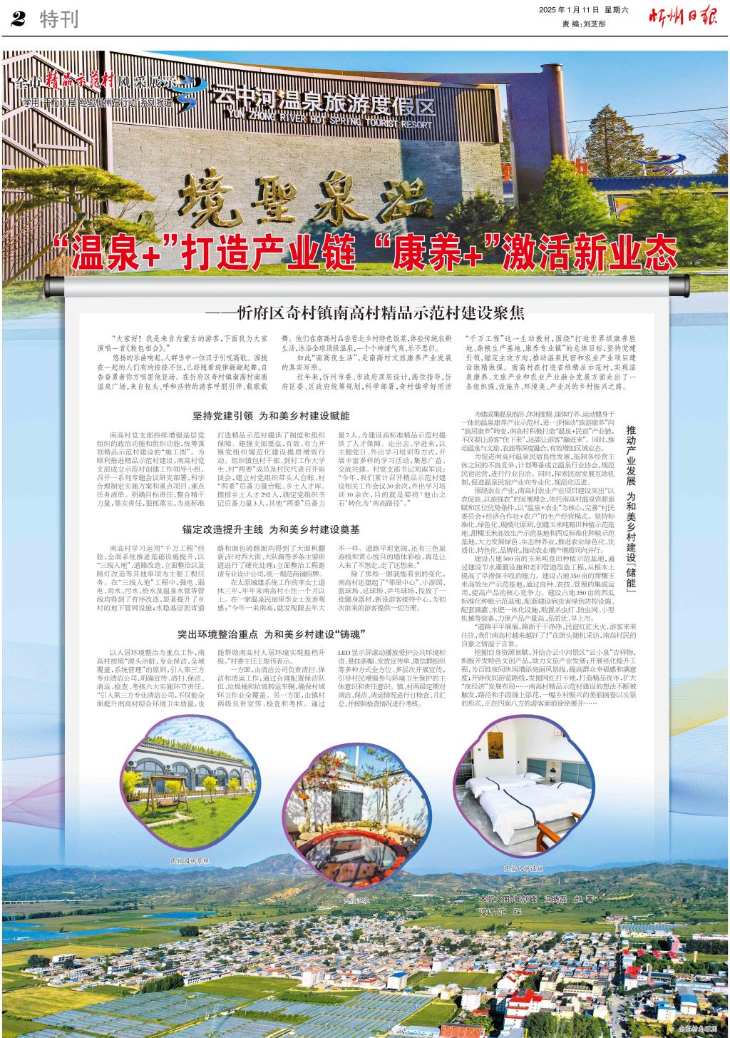 近年來(lái),忻州市委、市政府頂層設(shè)計(jì),高位指導(dǎo),忻府區(qū)委、區(qū)政府統(tǒng)籌規(guī)劃,科學(xué)部署,奇村鎮(zhèn)學(xué)好用活“千萬(wàn)工程”這一生動(dòng)教材,圍繞“打造世界級(jí)康養(yǎng)勝地、雜糧生產(chǎn)基地、康養(yǎng)專業(yè)鎮(zhèn)”的總體目標(biāo),堅(jiān)持黨建引領(lǐng),錨定主攻方向,推動(dòng)溫泉民宿和農(nóng)業(yè)產(chǎn)業(yè)項(xiàng)目建設(shè)做精做強(qiáng)。南高村在打造省級(jí)精品示范村,實(shí)現(xiàn)溫泉康養(yǎng)、文旅產(chǎn)業(yè)和農(nóng)業(yè)產(chǎn)業(yè)融合發(fā)展方面走出了一條組織強(qiáng)、設(shè)施齊、環(huán)境美、產(chǎn)業(yè)興的鄉(xiāng)村振興之路。