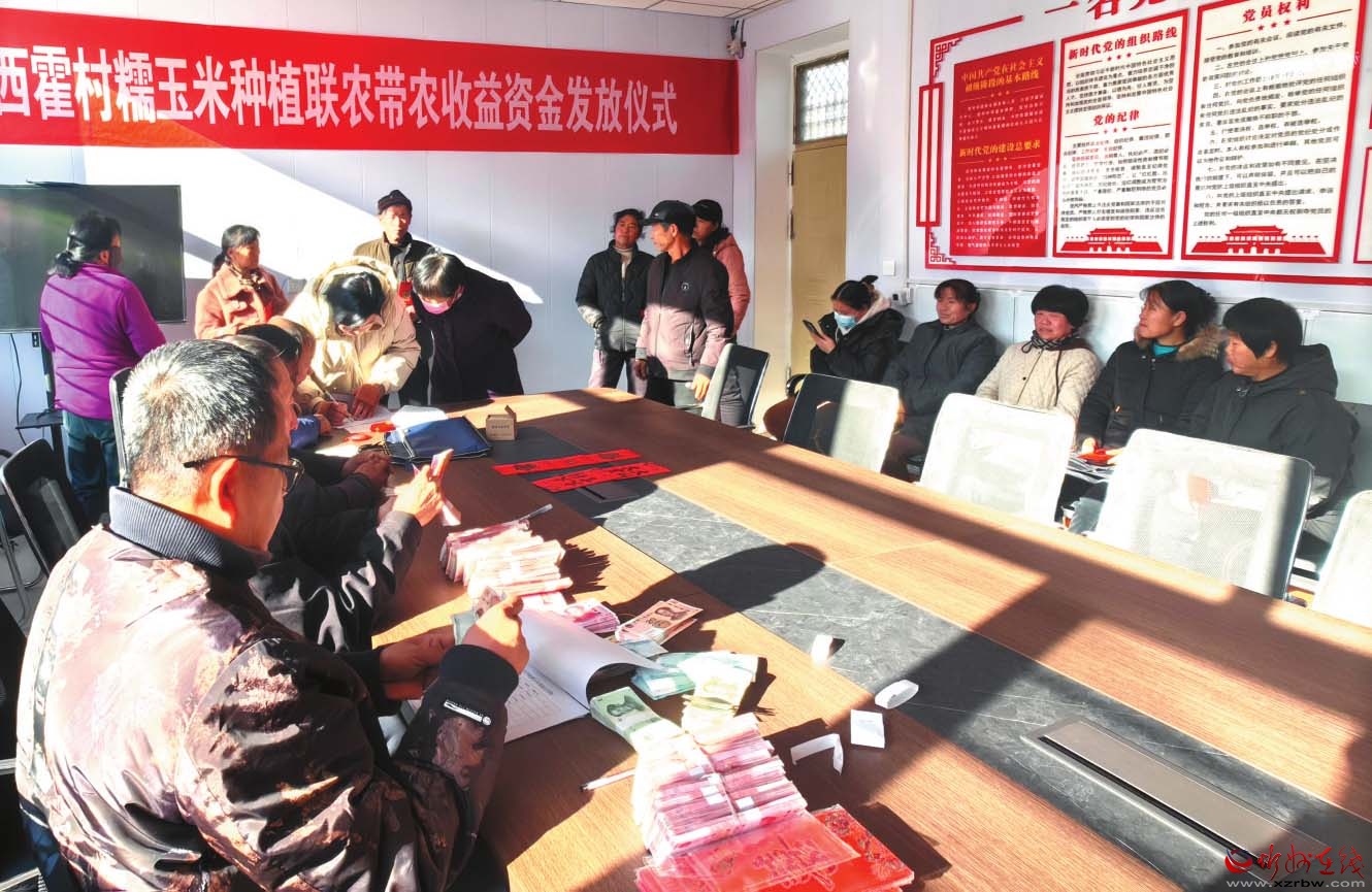 西霍村糯玉米種植聯(lián)農(nóng)帶農(nóng)收益資金發(fā)放儀式現(xiàn)場(chǎng)。
