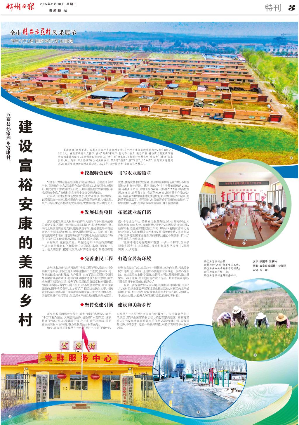 富康富康,富裕安康。五寨縣孫家坪鄉(xiāng)富康村是由12個(gè)村合并而成的移民新村,共有834戶、1815人。在政府的關(guān)心支持下,在村“兩委”帶領(lǐng)下,村民齊心協(xié)力、集思廣益,將物質(zhì)文明建設(shè)與精神文明建設(shè)相結(jié)合,充分調(diào)動(dòng)內(nèi)生動(dòng)力,以“和”“美”為主題,不斷提升鄉(xiāng)村文明“軟實(shí)力”,建設(shè)“點(diǎn)上出彩、線上美麗、面上協(xié)調(diào)”的全域美麗鄉(xiāng)村,努力增“顏值”、提“氣質(zhì)”、升“品質(zhì)”,讓美麗鄉(xiāng)村靚起來,向宜居宜業(yè)的新農(nóng)村昂首邁進(jìn)。2021年,該村被評為“山西省文明村莊”。
