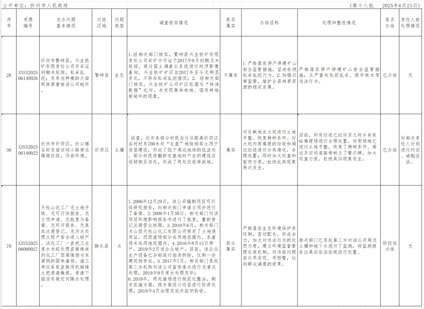 中央生態(tài)環(huán)境保護(hù)督察組群眾信訪舉報轉(zhuǎn)辦和邊督邊改公開情況一覽表(第十八批)