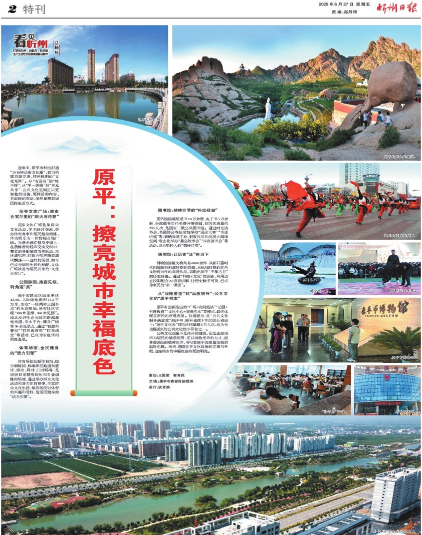 從今天起,《看見忻州》推出縣域篇,展示各縣(市)在基礎(chǔ)設(shè)施、文化場館、公園綠地等方面的成績,反映城市品質(zhì)和人民生活水平的提升。本報(bào)二版整版推出首篇《原平:擦亮城市幸福底色》,以饗讀者。