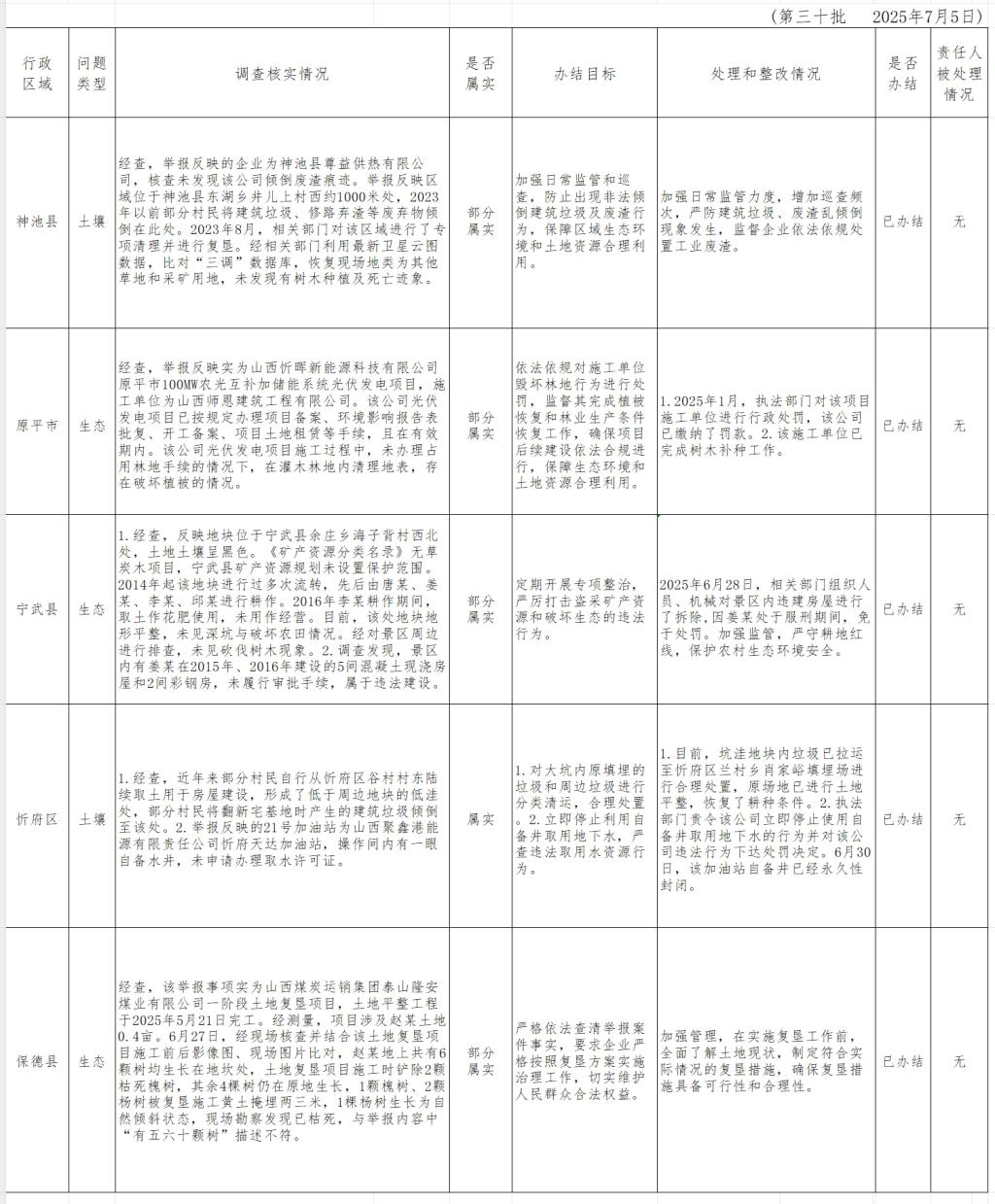 中央生態(tài)環(huán)境保護(hù)督察組群眾信訪舉報轉(zhuǎn)辦和邊督邊改公開情況一覽表(第三十批)
