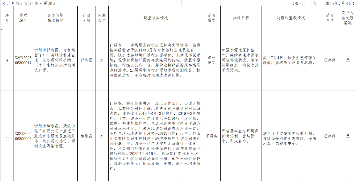 中央生態(tài)環(huán)境保護督察組群眾信訪舉報轉辦和邊督邊改公開情況一覽表(第三十三批)