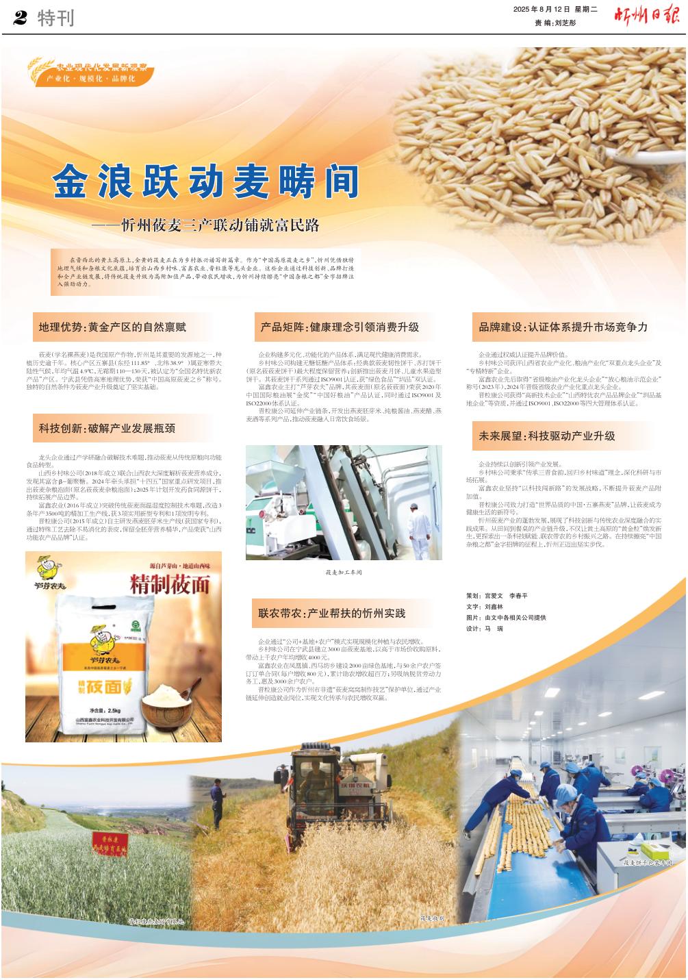 在晉西北的黃土高原上,金黃的莜麥正在為鄉(xiāng)村振興譜寫新篇章。作為“中國高原莜麥之鄉(xiāng)”,忻州憑借獨特地理氣候和雜糧文化底蘊,培育出山西鄉(xiāng)村味、富鑫農(nóng)業(yè)、晉??档三堫^企業(yè)。這些企業(yè)通過科技創(chuàng)新、品牌打造和全產(chǎn)業(yè)鏈發(fā)展,將傳統(tǒng)莜麥升級為高附加值產(chǎn)品,帶動農(nóng)民增收,為忻州持續(xù)擦亮“中國雜糧之都”金字招牌注入強勁動力。