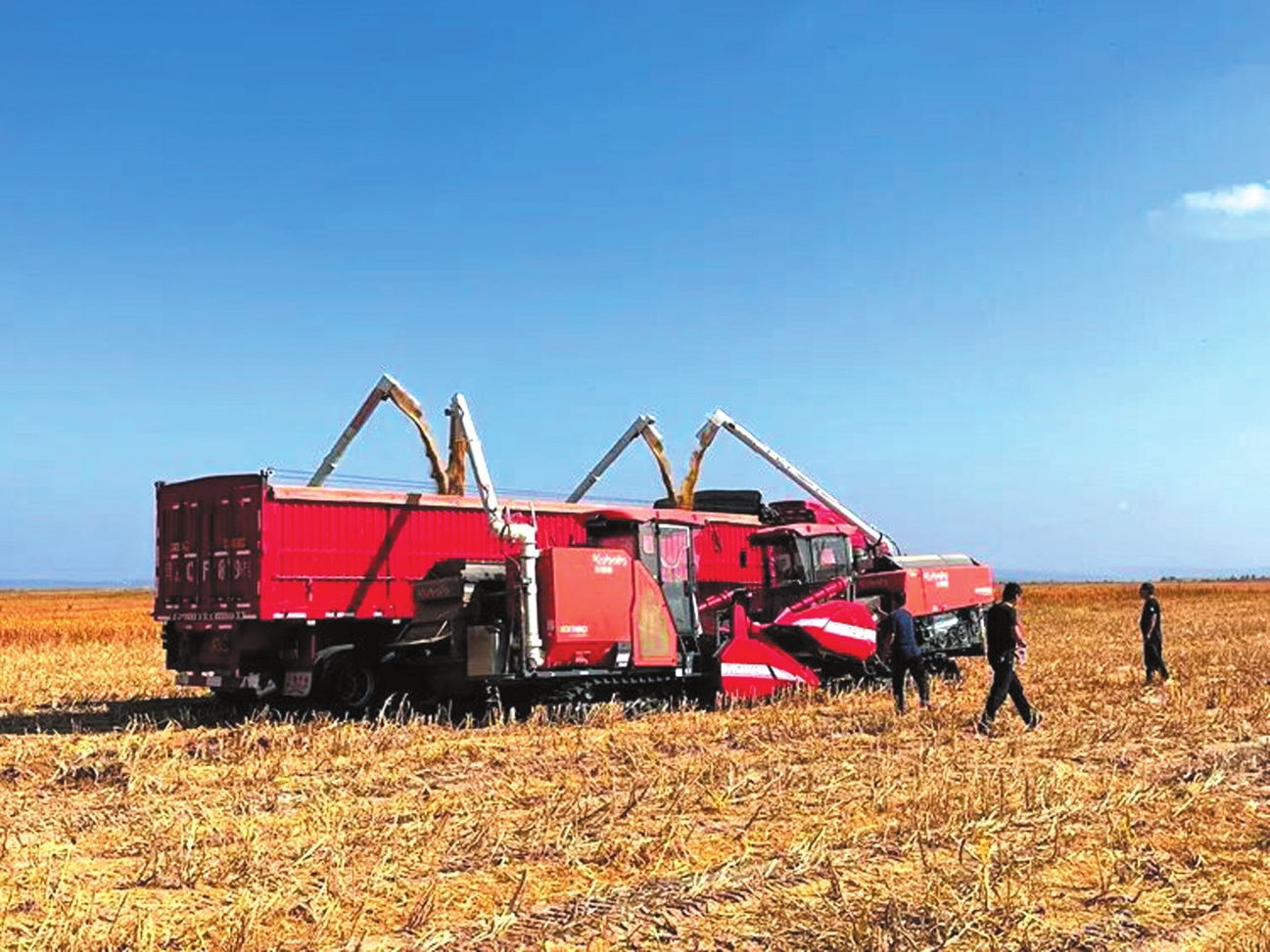 搭載北斗導(dǎo)航系統(tǒng)的聯(lián)合收割機(jī)作業(yè)現(xiàn)場(chǎng)