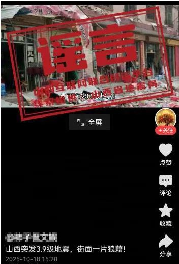 10月18日,有網(wǎng)民發(fā)布“山西突發(fā)3.9級地震,街面一片狼藉!”相關(guān)信息,引發(fā)網(wǎng)民關(guān)注,經(jīng)向相關(guān)部門確認(rèn),該信息與事實(shí)不符。