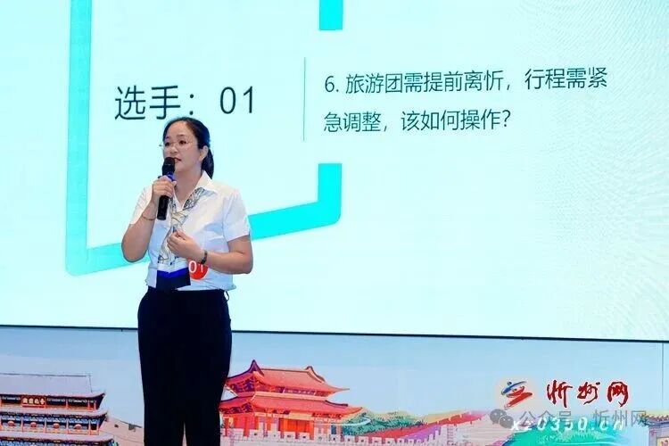 作為忻州市文旅行業(yè)的年度盛會,大賽自啟動以來便得到全域響應,吸引來自 14個縣市區(qū)的34名導游報名參賽,經(jīng)過層層篩選,10名選手脫穎而出晉級總決賽,在為期5天的比拼中,通過專題推介、對抗講解、模擬帶團、主題演講四大核心環(huán)節(jié)展開激烈角逐,全面考核職業(yè)道德、知識儲備、應急處置等綜合素養(yǎng),賽制標準嚴格對標省賽與國賽要求。